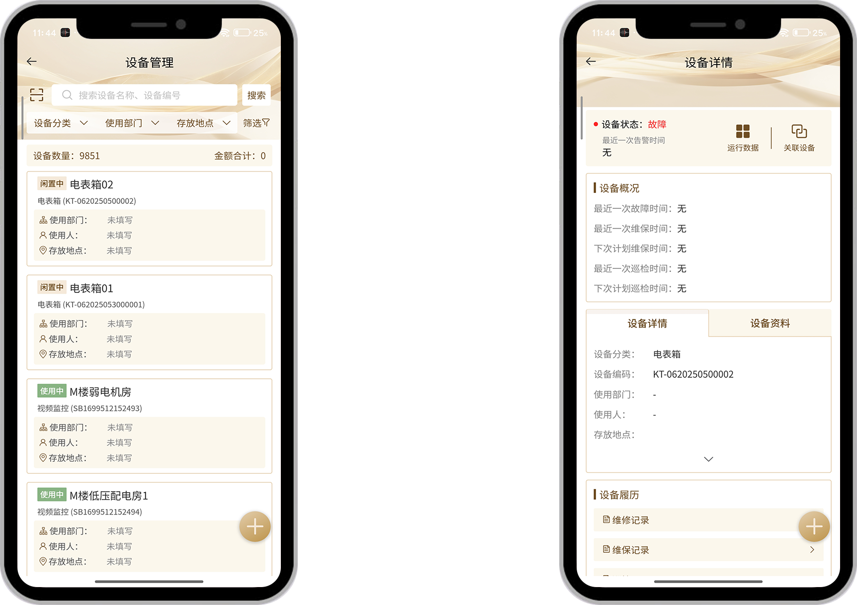 查看详情一设备一码,BIM可视化展示,档案、状态、费用一目了然,实现真正的精细化管理。